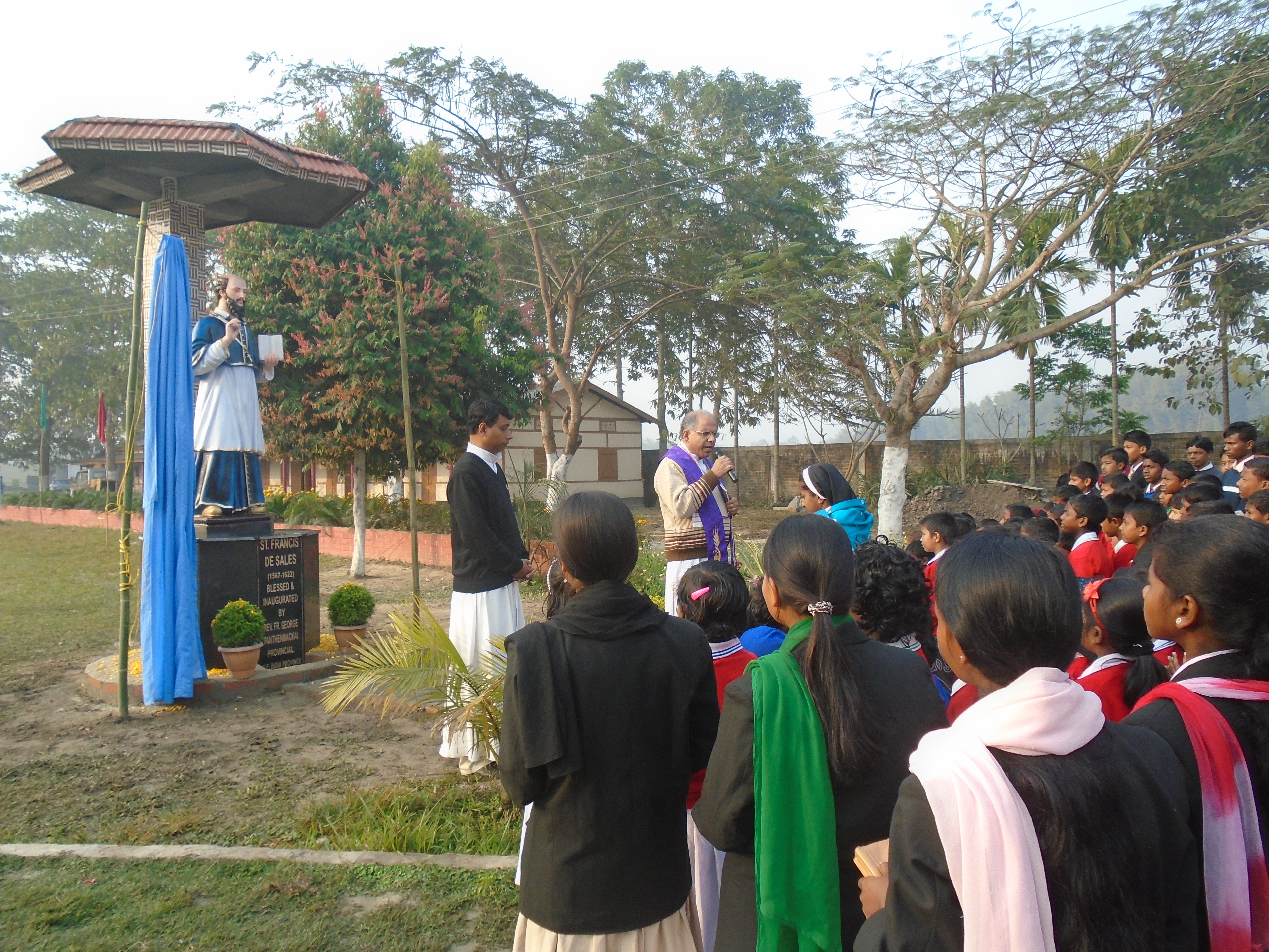 Bahalpur, located in the taluk of Chapar Salkocha, is 65 km towards east from the district head quarter, Dhubri, in the State of Assam. Although the parish was canonically erected on March 3, 2003 it was in 2004 that the MSFS fathers took charge of the mission. The first Parish Priest Fr Anto Joseph of the diocese of Bongaigaon stayed at Bahalpur from October 2002 to 2004. Through his hard work and initiative, the present plot of land at Bahalpur was purchased and opened a school named St Jude School on January 22, 2003. Later in 2005 it was retitled as SFS School. On December 26, 2004 Fr Cherian Marottickathdathil msfs (2004-2010) took charge as the first parish priest. He was helped by Fr Jose Karipadathu for few months in the ministry. Soon Fr Cornelius Bara and Bro Pretap Kerketta joined the community. The present two-storey building of the school was built in phases starting in 2004 and ending in 2009. A dispensary was built in 2006, the convent for sisters in 2010, hostel for girls in 2007, while a hostel for boys was built in 2014. In 2010 the parish was entrusted permanently to the Missionaries of St Francis de Sales by Bishop Thomas Pulloppillil of Bongaigaon.